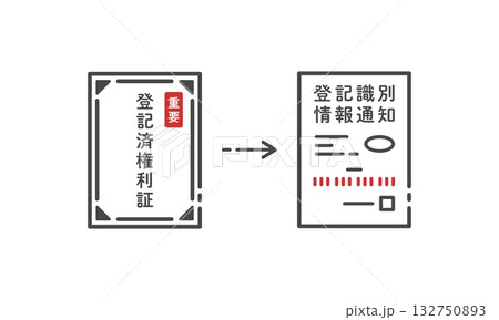 登記済権利証と登記識別情報通知書のイメージ図解イラスト (ベクター素材)