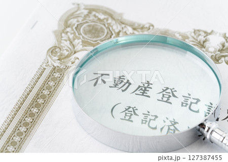虫眼鏡が置かれた不動産登記識別情報(登記済権利証)