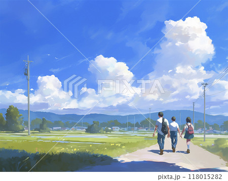 学生 田舎道 登下校風景