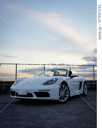 夕焼け空とポルシェ718ボクスター(オープンカー)