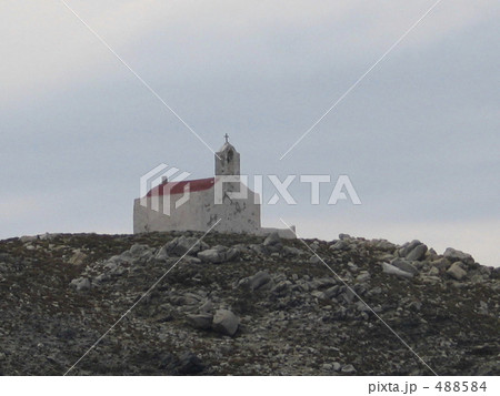 エーゲ海孤島に建つ教会と空の青