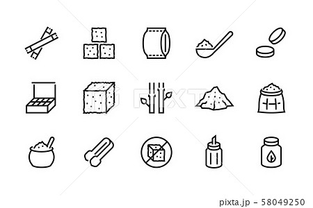 Sugar line icon. Sweeteners products, sugar cane cube bag and packages, stevia and cane organic