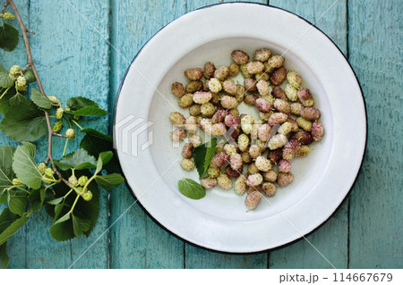 Delicious sweet white mulberry in a bowl