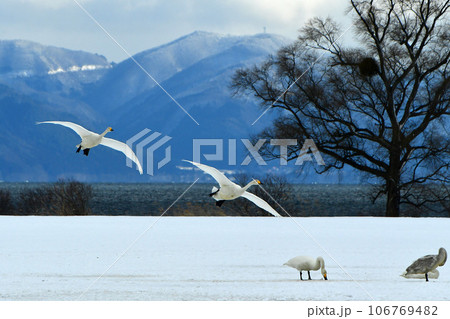飛来地で越冬する白鳥