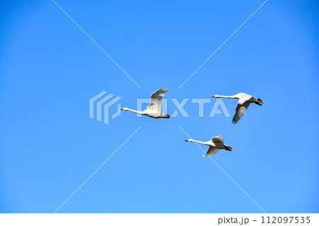 空を飛ぶハクチョウ
