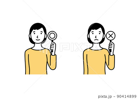 まるばつ札を持った女性