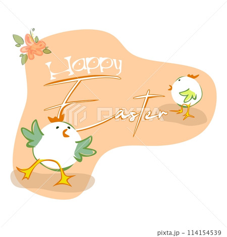 Happy Easter greeting card with cute chickens and bunny. Animal wildlife holiday cartoon character. Vector