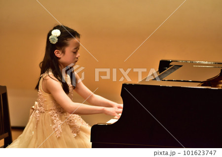 ピアノ (音楽教室 練習 習い事 レッスン 鍵盤楽器 子育て 育児 女の子 人物 コピースペース)