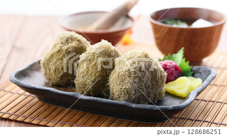 とろろ昆布のおにぎりと味噌汁 和食の朝ごはん