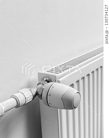 A radiator with a thermostat on it