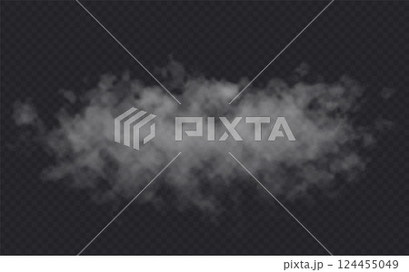 Fog effect on transparent dark background. Smoke gray cloud
