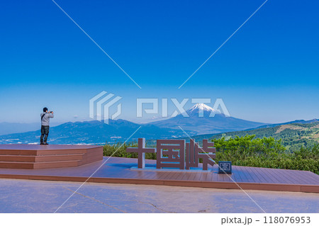 《神奈川県》ツツジ咲くの箱根大観山展望台から富士山
