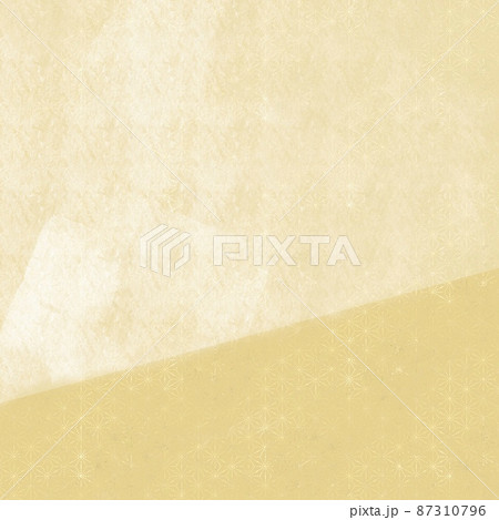 破線の麻の葉模様の和柄背景 金色 和紙風テクスチャ 上品 白いスペース 六角形 正方形バナー