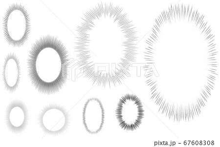 集中線フラッシュ吹き出し素材セット(正円・楕円2段階、白い下地付き)