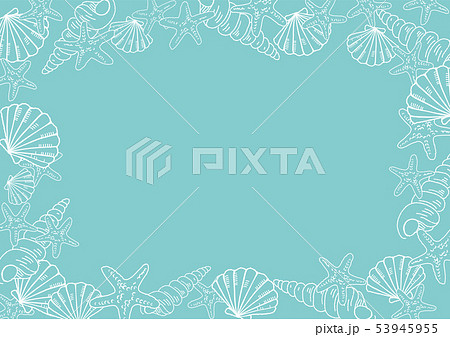 手描きの貝殻と真珠とヒトデの海辺イメージのキラキラ背景イラスト