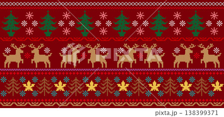 トナカイとツリーの編み物調ノルディック柄ライン マルチカラー