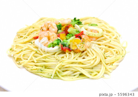 彩りパスタと白ワインの洋食料理素材