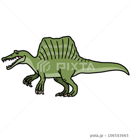 横向きのスピノサウルスのイラスト(主線あり)/恐竜・図鑑・かわいい素材