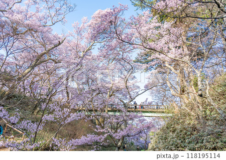 長野県伊那市 天下第一の桜と言われる高遠城址公園満開の桜と白兎橋