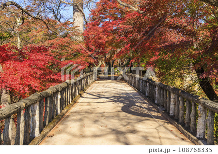 信州 長野県伊那市高遠町東高遠 高遠城址公園の紅葉 秋の白兎橋
