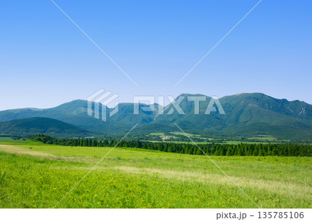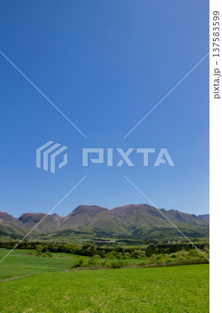 新緑の久住高原と久住連山
