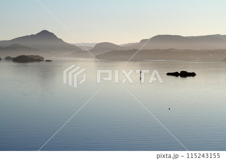 白夜に霞むノルウェー、ベルゲン沖の神秘的な風景