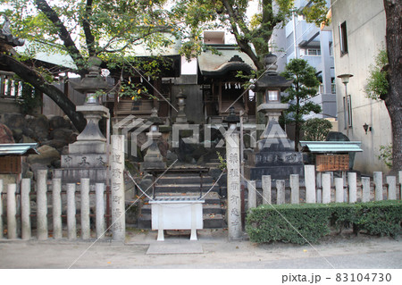 大阪天満宮境内の中にある摂社老松社紅梅殿と白大夫社の風景