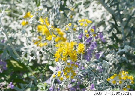 白と黄色 シロタエギク