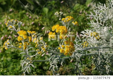 シロタエギク 黄色の花(白妙菊)