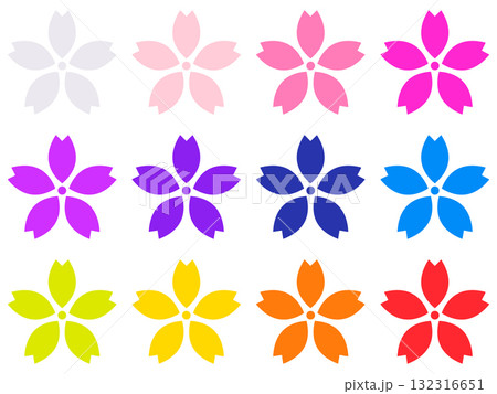 花びら5枚の花 カラフルなスタンプ風のアイコン素材12色セット