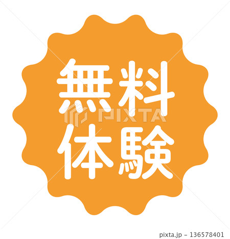 「無料体験」のイラストマーク 波線の丸 背景透過 オレンジ色