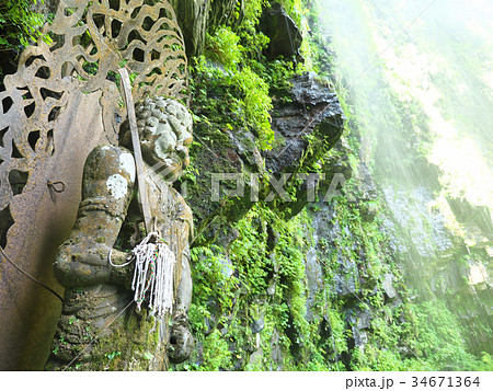阿弥陀ケ滝(長良川水系ー前谷川)滝裏のお地蔵様