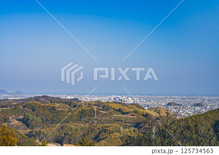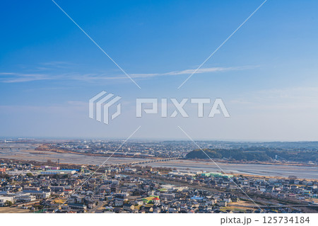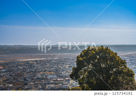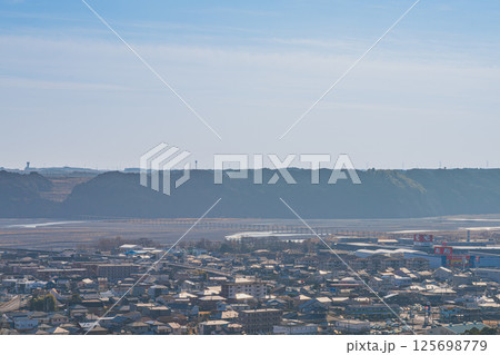 島田市の白岩寺公園前展望台から見た島田市の街並みと風景(静岡県)
