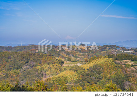 島田市の八幡パノラマ台から見た薄っすらと見える富士山の風景(静岡県)