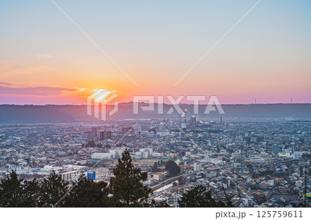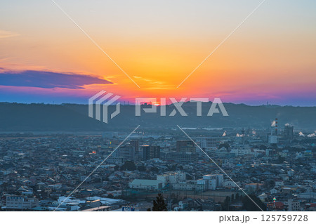 夕方の島田市の白岩寺公園から見た島田市の街並みと風景(静岡県)