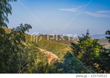 島田市の八幡富士展望台から見た薄っすらと見える富士山の風景(静岡県)