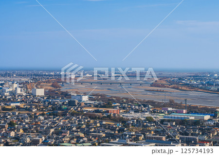 島田市の白岩寺公園前展望台から見た島田市の街並みと風景(静岡県)