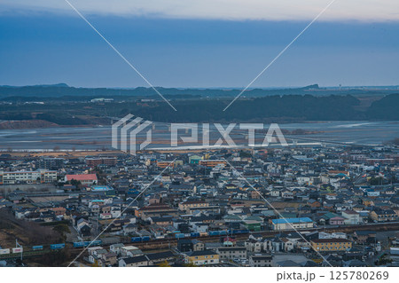 夕方の島田市の白岩寺公園から見た島田市の街並みと風景(静岡県)