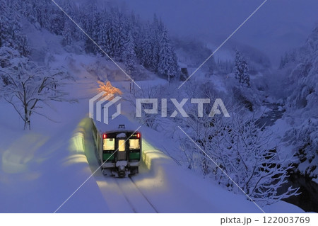 冬の早朝の只見線