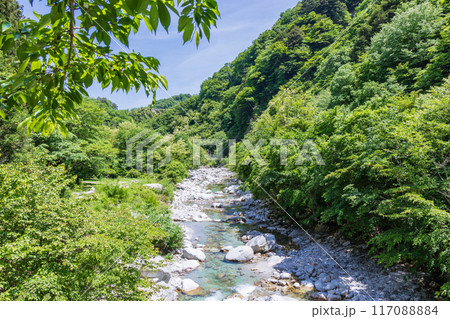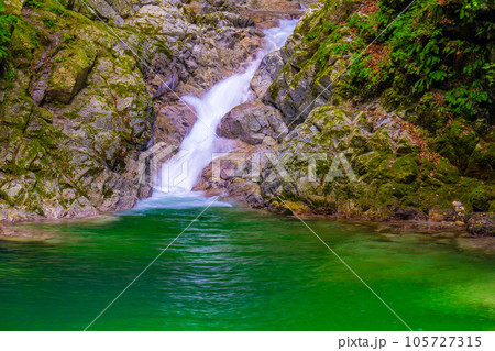 「山梨県」新緑の映える尾白川渓谷 北杜市