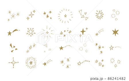 シンプルで可愛い手描きの星 きらきら装飾イラストセット きらめき 流れ星