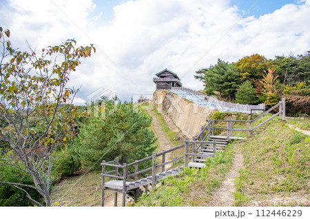 【日本100名城】鬼ノ城 学習展望台から見た西門と秋の青空2 岡山県総社市