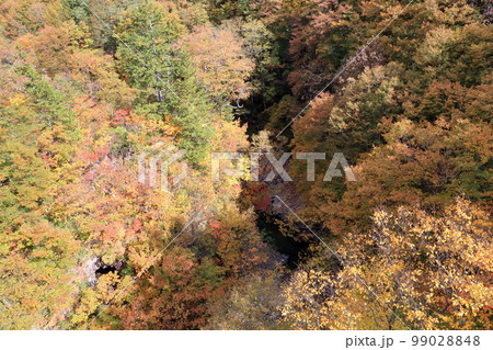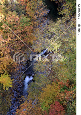 上から眺める紅葉と川の流れ(中津川渓谷 福島県 裏磐梯)