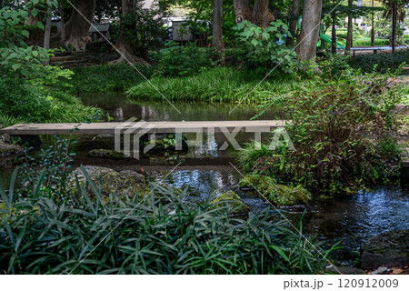 静岡県三島市 白滝公園水辺の散策路と新緑