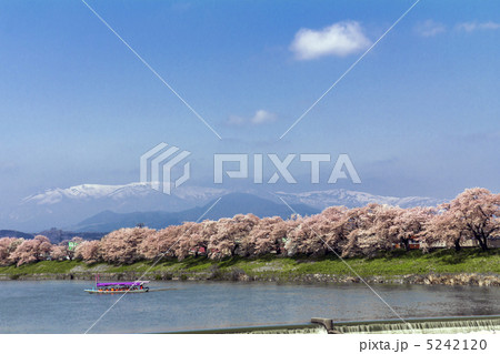 満開の桜と蔵王連峰 白石川堤一目千本桜 宮城県大河原町