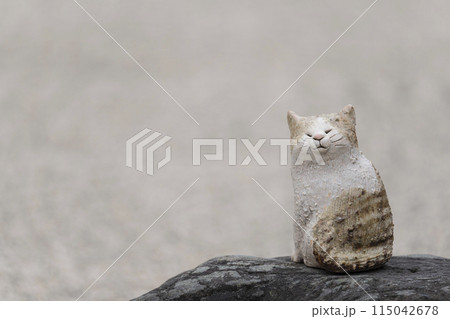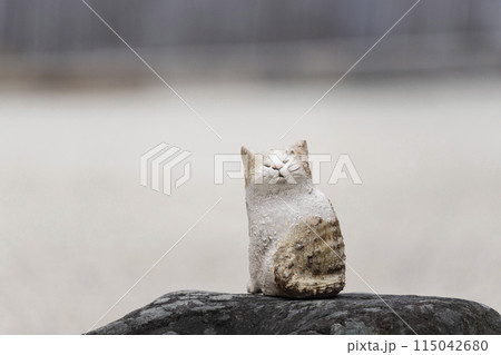京都 聖護院門跡 宸殿前庭の枯山水に置かれたネコの置き物