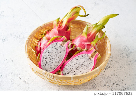 カゴに盛ったドラゴンフルーツ