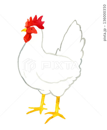 白色のニワトリ(レグホーン) 手描き水彩イラスト素材