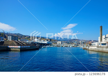 柔らかな冬の日差しに包まれる和歌山加太港 降り注ぐ太陽の光と水平線近くの輝く海②