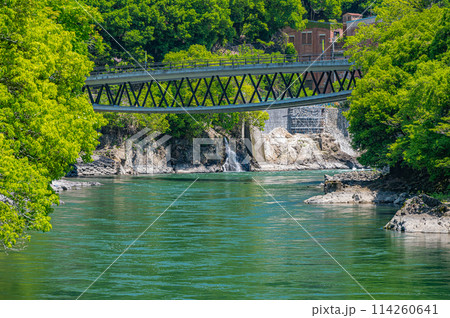 新緑の宇治川風景 白虹橋 旧志津川発電所跡 京都府宇治市